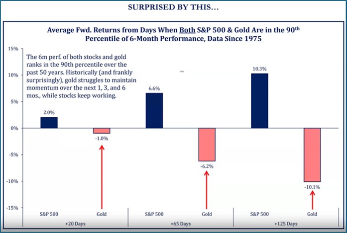 Perception of safety may be shifting. After leaping more than 30% YTD through October 20, gold surrendered 10% during the final trading days of the month. The meteoric rise and flows into precious metals cause some to wonder if its appeal is part of a broader flight to safety ahead. Interesting: when both gold and equities surged together over a six-month stretch, forward returns for gold tend to be poor while stocks play catch-up. This appears to be playing out in recent days. In other words, what many see as a hedge quickly turned into a herd trade. It’s a timely reminder: in markets, crowded safety can be risk in disguise.